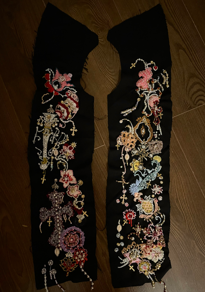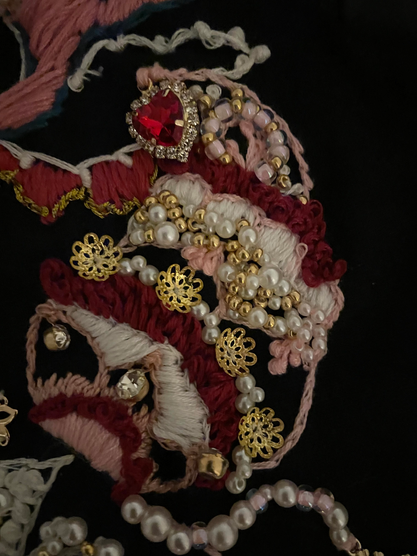 The project theme centered around metamorphosis, leading me to explore beyond paintings and venture into embroidery. I up-cycled a dinner jacket and created something which completely transforms when it opens out as both sides of the lining are adorned with hand-stitched embroidery.